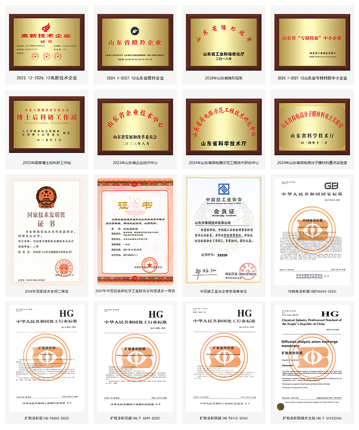 山東天維膜技術有限公司成立于2003年,專業(yè)從事均相離子交換膜及水處理設備研究、開發(fā)的高新技術企業(yè),山東省瞪羚企業(yè)、山東省隱形冠軍企業(yè),山東省“專精特新”中小企業(yè),中國膜工業(yè)協(xié)會常務理事單位。公司建有國家博士后科研工作站、山東省企業(yè)技術中心、山東省荷電高分子膜材料重點實驗室以及山東省荷電膜示范工程技術研究中心。 公司榮獲1項國家技術發(fā)明二等獎和1項中國石油和化學工業(yè)聯(lián)合會科技進步一等獎,牽頭制訂1項國家標準,4項國家化工行業(yè)標準,主持承擔國家重點研發(fā)計劃、國家“863”計劃、國家重點新產(chǎn)品計劃、國家中小企業(yè)重點創(chuàng)新基金、山東省重大科技創(chuàng)新工程等多項國家和省部級科技計劃,擁有自主知識產(chǎn)權的均相離子交換膜制備及應用技術,系列離子交換膜產(chǎn)品已被列入國家戰(zhàn)略計劃。主要產(chǎn)品有:均相離子交換膜、擴散滲析器、電滲析器、雙極膜電滲析器和均孔膜過濾器。產(chǎn)品廣泛應用于物料脫鹽、有機酸生產(chǎn)、電子鋁箔、鋼鐵、濕法冶金、煤化工、石油煉化、化工、環(huán)保等領域的酸、堿、鹽廢水處理及資源化利用,為企業(yè)提供綠色、清潔生產(chǎn)一體化解決方案。 山東天維膜技術有限公司熱誠歡迎各界朋友前來洽談業(yè)務,共圖發(fā)展!